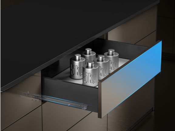 N2全展滑軌,采用兩節(jié)隱藏式設(shè)計(jì),使用時(shí)抽屜可全拉出,充分利用抽屜空間。緩沖滑軌在開合關(guān)閉間,更靜音、更順滑,隱藏式設(shè)計(jì)讓抽屜更顯簡(jiǎn)約之美。